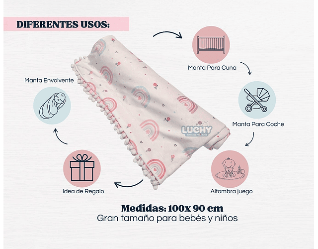 Cada cobija está hecha con amor y dedicación, asegurando un acabado impecable que se destaca por su durabilidad y diseño único. Esta atención al detalle garantiza que tu bebé disfrute de un producto exclusivo, pensado para acompañarlo en sus sueños y momentos especiales. Podrás elegir el diseño que más te guste desde flores, elefantes, arcoiris, unicornios, hasta el diseño que a tu elijas, ADICIONAL PODEMOS PONER EL NOMBRE DE TU BEBÉ EN LA COBIJA✨🧵